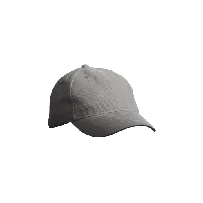 High-quality 6-panel cap with light lamination, easy to embroider on | Highly brushed cotton | Metal buckle in mat silver with press stud and embroidered eyelet | Six embroidered air holes | 8 decorative stitching lines on the peak | Front panels lightly laminated | Padded satin sweat band