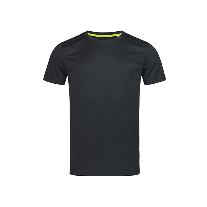 Bird-eyelet mesh | Stretchable fabric | Side panels | Decorative flatlock seams | Contrast neck tape (Cyber Yellow) | Set-in sleeves | Care label in the side panel | Small size label in the collar | Washable up to 40 °C | Normal fit