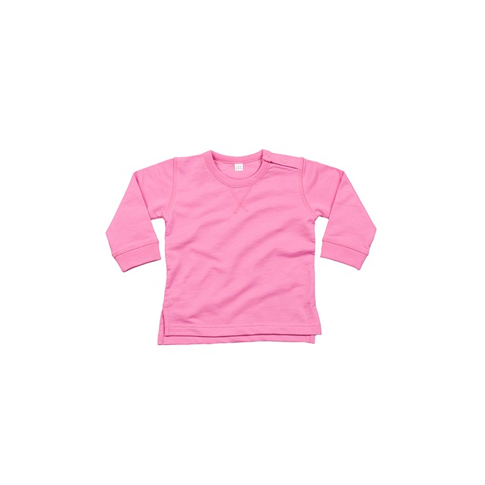 Organic or in Conversion to Organic Cotton / recycled Polyester (rPET) | French Terry | Crew neck sweatshirt with 2 poppers at shoulder for ease of dressing | Soft rib crew neck | Soft ribbed cuffs at sleeve ends | Straight hem with side vents and drop tail | V stitch detail at front neck | Tear-off label at back neck