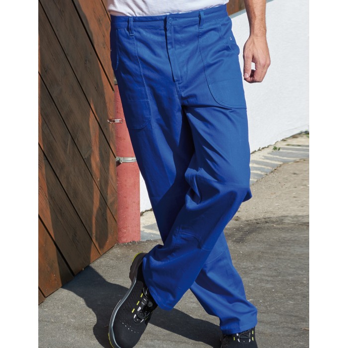 Million times tested drill quality | Classic pants with elastic waist and belt loops | 4 pockets including one for folding yardstick | Pants with knee reinforcement | Pre-shrunk | Washable up to 60 °C