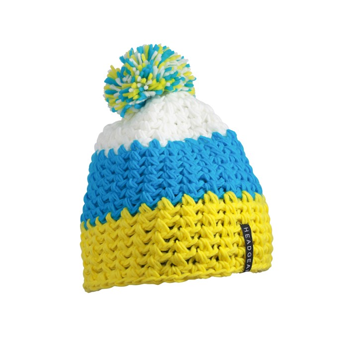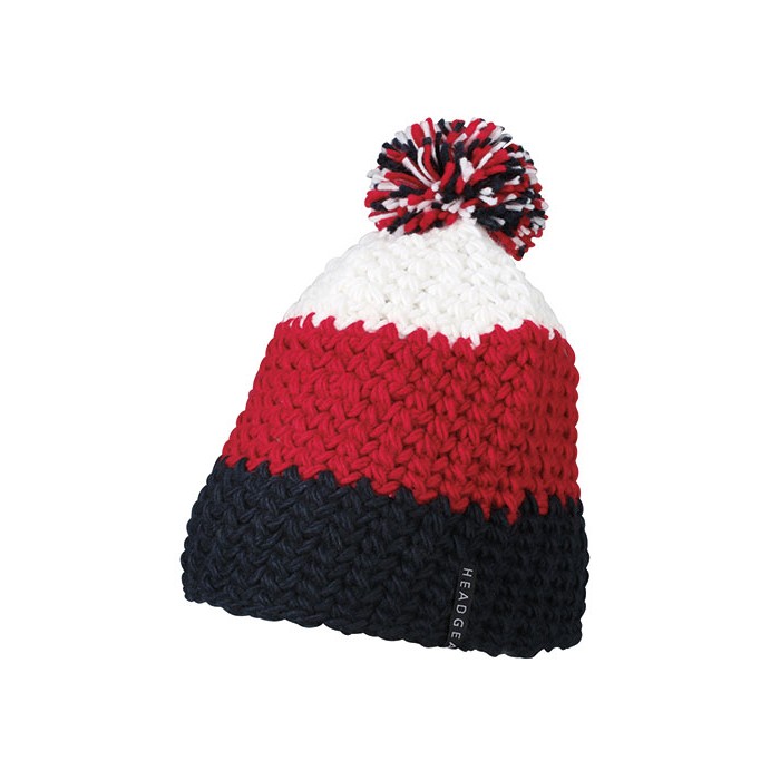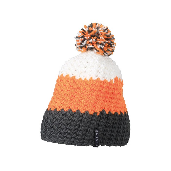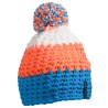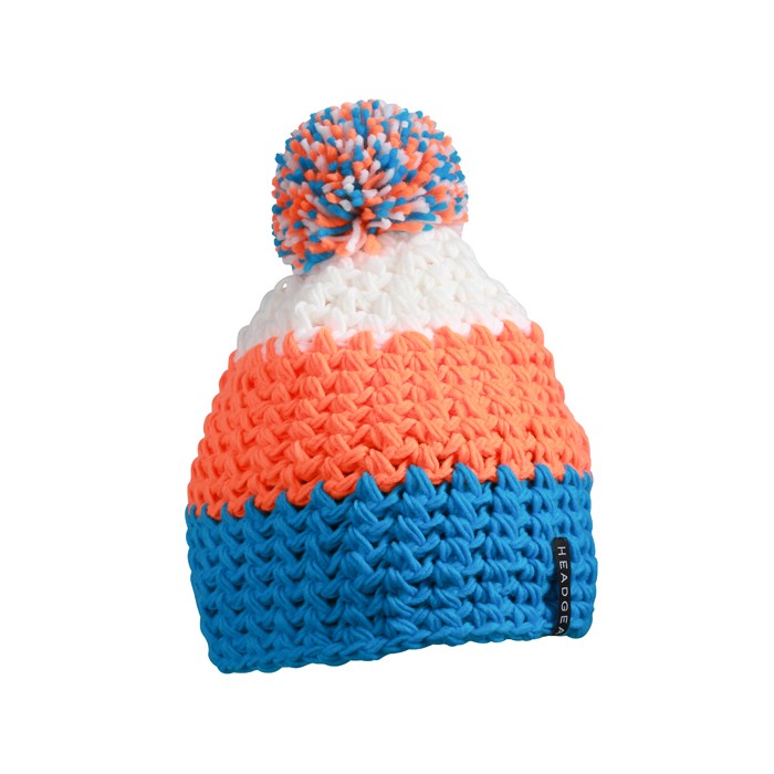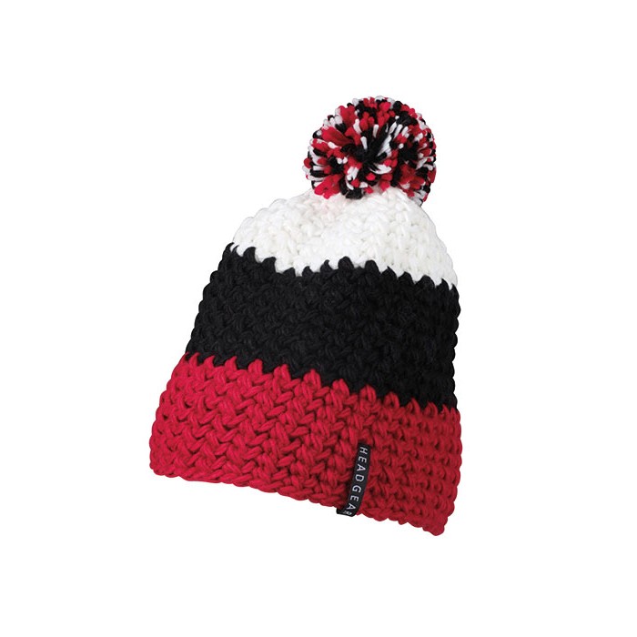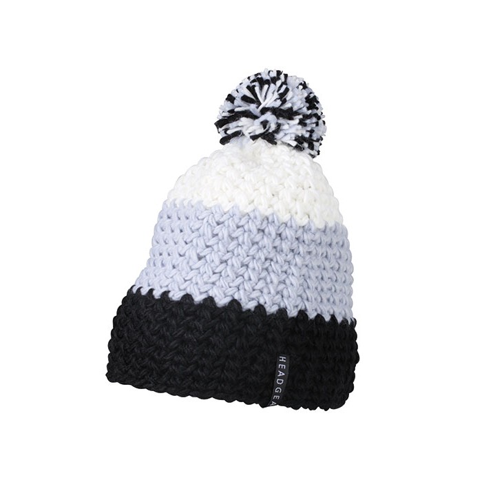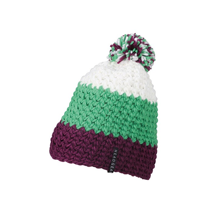 Trendy 3-coloured crocheted cap with pom pom | Coarse mesh structure | Handmade | Comfortable thanks to a fleece band on the inside