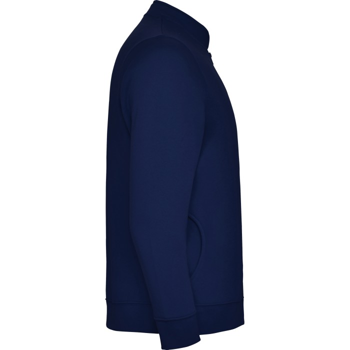 Brushed lining | Sweat jacket with Asian collar | Reinforced tape at neck | Full length zip | Side pocket | 1x1 rib knit cuffs and hem | Tear-out label