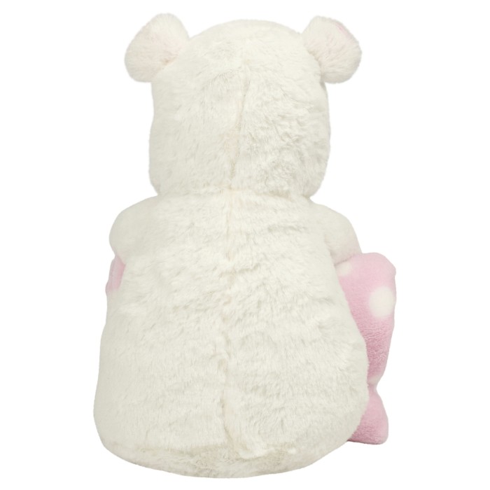 Soft plush Hippo with contrast blanket | Contrast feet, nose and horns | Sewn eyes | Blue and white spotted velour blanket | Remove all hang tags and their fasteners before giving these items to a child | Hook and loop fastening on feet and paws | Complies with EN71 European Toy Safety regulations | Suitable for children of all ages | Blanket: 90 x 75 cm