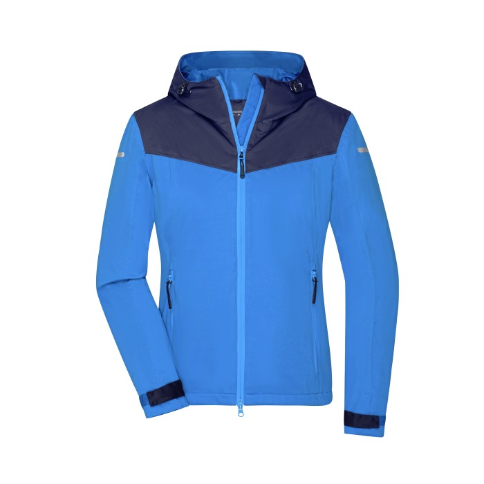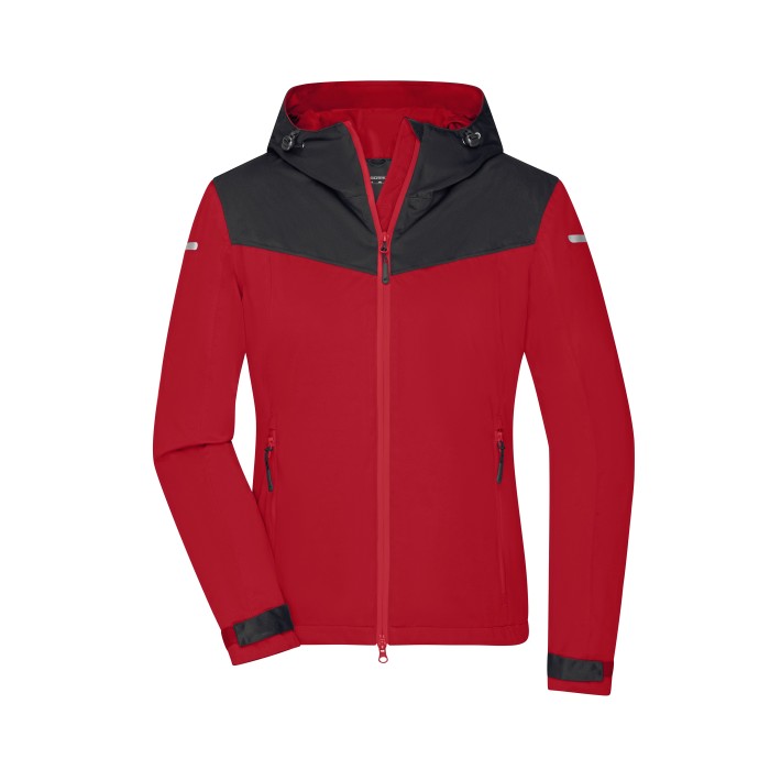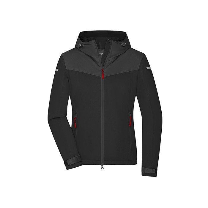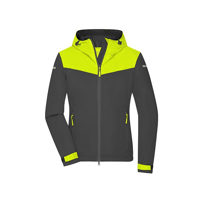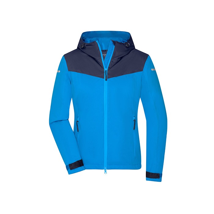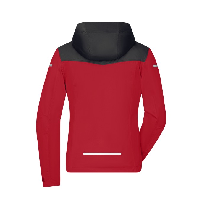 Light, padded outdoor softshell jacket | Slightly fitted | Outer material: (140 g/m²): 100% recycle polyester, Lining: 100% recycled polyester/Functional material made of recycled polyester with TPU membrane | Wind- and water-repellent (10,000 mm water column) | Breathable and permeable to vapour (5000 g/m²/24 h) | Sealed seams | Waterproof zips | Light mesh lining | 2-way zip covered along full length with chin protection | 2 side pockets, 1 inside pocket | Adjustable hood | Hook-and-loop for width regulation on the sleeves | Ergonomic fit, extended back section | Stylish, reflective details on sleeve and at the back | Zip for decoration at the back | Zips: YKK