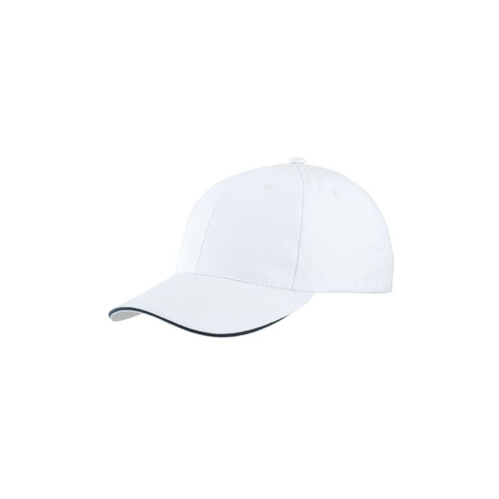 High-quality light and soft 6-panel sandwich cap | Brushed cotton | Clip fastener with metal eyelet | Six embroidered air holes | 6 decorative stitching lines on the peak | Front panels laminated | Padded satin sweatband