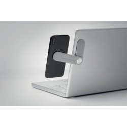 Magnetic ABS Phone holder with metal ring (3M sticker on the back). Attachable in laptops.