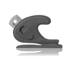 Ergonomically designed cutter with spare blade | This tool saves e.g. the cutting plotter against wear and tear | The film web runs over a plastic guide, ensuring that there is no damage to the covering of the plotter | The concealed blade is positioned at an optimal 45° angle so there is no risk of injury