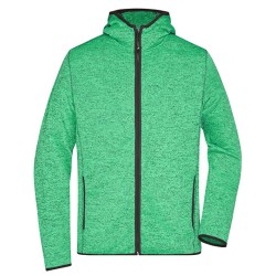 Hooded jacket made of knitted fleece in melange look | Smooth, warming, easy-care fabric | Outside knitted look, inside roughened, thus soft and fluffy | Slim-fit dividing seams | Attached hood | Contrasting cuffs | 2 pockets at the front