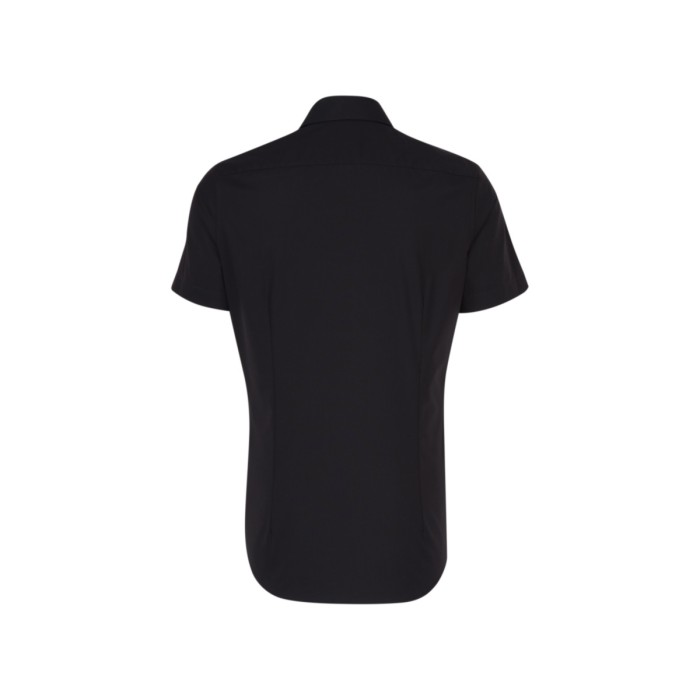 No breast pocket | Non-iron | Business Kent collar | Half sleeve | Without cuff | Back dart for shaped fit | Shaped fit | Poplin: Black, White | Fil a fil: Anthracite, Mid Blue, Sky Blue