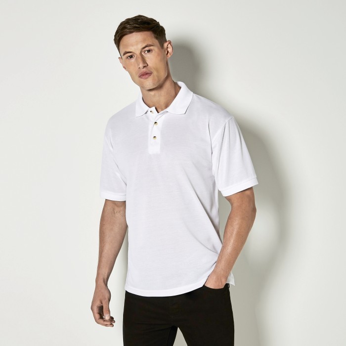 3-button-placket | Piqué | 1x1 Rib flat knit collar and cuffs | Self fabric taped back neck | Twin needle hem | Developed for sublimation printing | Xpres woven back neck label | Care label with spare button attached in side vents