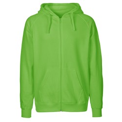 Fairtrade-certified cotton | Combed organic cotton | Fleece with brushed backside | Matching YKK zipper | Double lined hood | Kangaroo pocket | Elastane rib at sleeves and bottom | Flat strings