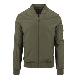 Neutral size label without branding | Neck print possible | Rib cuffs at the hem and sleeve opening | Side pockets above hem | Fashionable bomber jacket | Typical bomber pocket on left sleeve