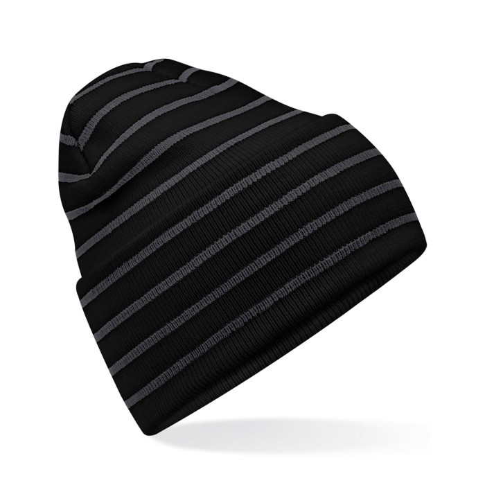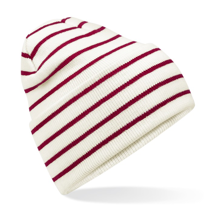 Contains at least 50% Recycled Polyester | Classic stripe design | Double layer knit | Wide cuffed design for optimal decoration | TearAway label