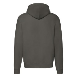 Covered metal zip for enhanced printability | Double fabric hood with self-coloured flat drawcord | Single Jersey back neck tape | Two fitted front pockets | Double needle stitching all over | Waist and cuff in cotton/elastane rib