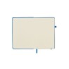 A5 notebook with 70% recycled pre-consumer leather and 30% latex PU cover. Casebound. 192 lined pages recycled paper (96 sheets). Matching elastic closure strap and pen holder.