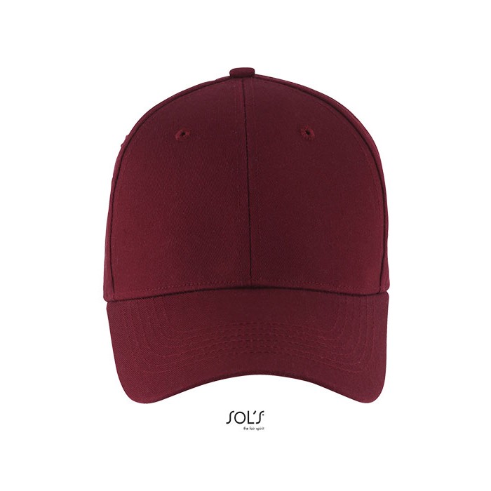 Twill, 100% cotton, unbrushed | Six panels | Structured front panel | Pre-curved peak | Cotton twill padded headband | 6 embroidered eyelets | Modern adjustable back fastening with metal buckle
