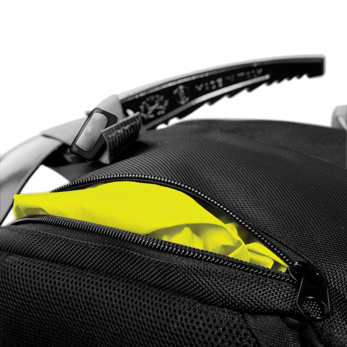 600D / Ripstop honeycomb Polyester combination | EasyPanel™ embroidery access | Detachable waterproof rain cover | Padded adjustable shoulder straps | Adjustable waist and chest straps | Ergonomic breathable padded mesh back panel | Hydration bladder compatible | Trekking pole attachment points | Ice axe attachment point | Compression straps | Elasticated mesh side pockets | Zippered side pocket | Internal mesh pocket | Reflective accents | Back light attachment loop | Grab handle | Capacity: approx. 30 litres | Delivery without content / decoration