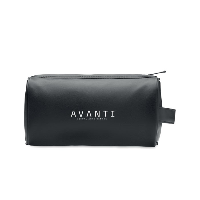 Cosmetic bag with one zipper in soft PU. The lining is 210D RPET.