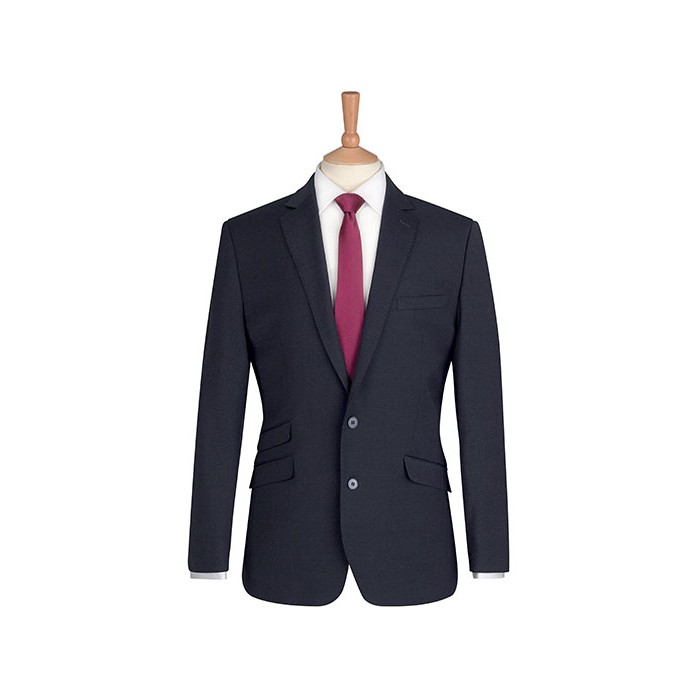 Single breasted slim fit jacket | Shorter length | 2 button front | Side vents | Ticket pocket | Slim lapels with saddle stitching | Piano faced interior with slim pocket jets | Machine washable at 40° C or dry clean | Grade 4/5 pilling | Taken to 60,000 rubs on a Martindale test