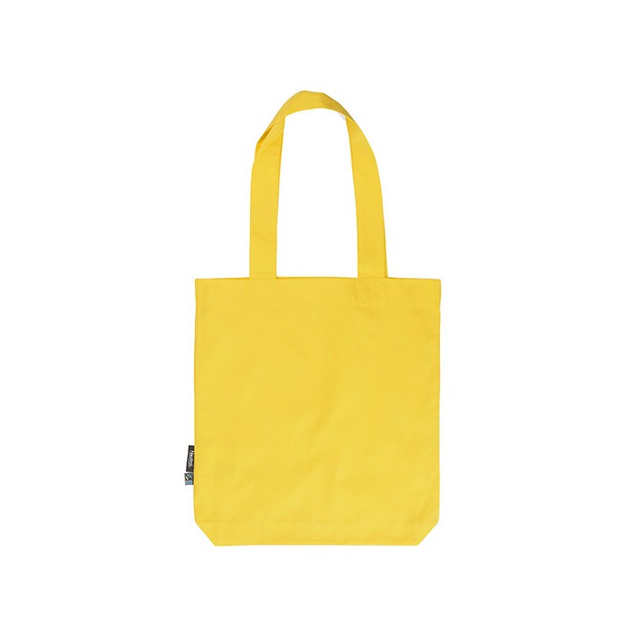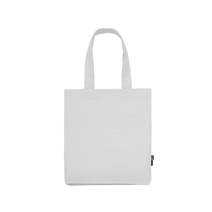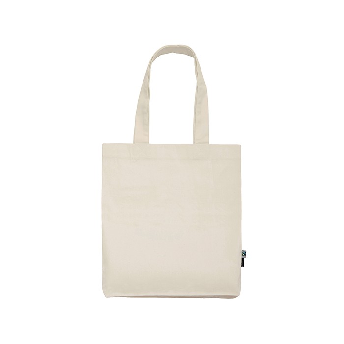 Fairtrade-certified cotton | Combed organic cotton | Twill weave | Long handles | Neutral and Fairtrade flag label at side | Delivery without content / decoration