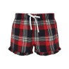 100% flannel twill weave | Woven tartan shorts with frill hem | Full elasticated waist with contrast mockdrawcord | Tear-out label