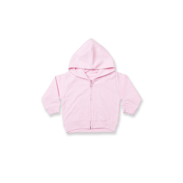 Hooded sweatshirt with plastic dyed to match YKK zipper | Single jersey in hood | Kangaroo pocket | Knitted rib at cuff and hem | Twin needle stitching | Size tab only