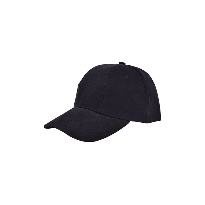 6-panelowa czapka | Bawełna czesana | Obszyte otwory wentylacyjne | Wzmocnione panele przednie | Przesunięte panele (brak szwu z przodu) | Regulowana z metalowymi sprzączkami w kolorze złotym | Dekoracyjne szwy na daszku