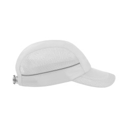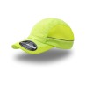 Jeden rozmiar | 4 panele | Panele czołowe nieusztywnione | Wstępnie zakrzywiony daszek | Z tyłu pasek z tej samej tkaniny | Brak otworów wentylacyjnych | 100% Poliestrowa taśma pochłaniająca pot | Brak przeszyć na daszku | Wstawka z siateczki na daszku | Kontrastowe paski odblaskowe z boku i z tyłu