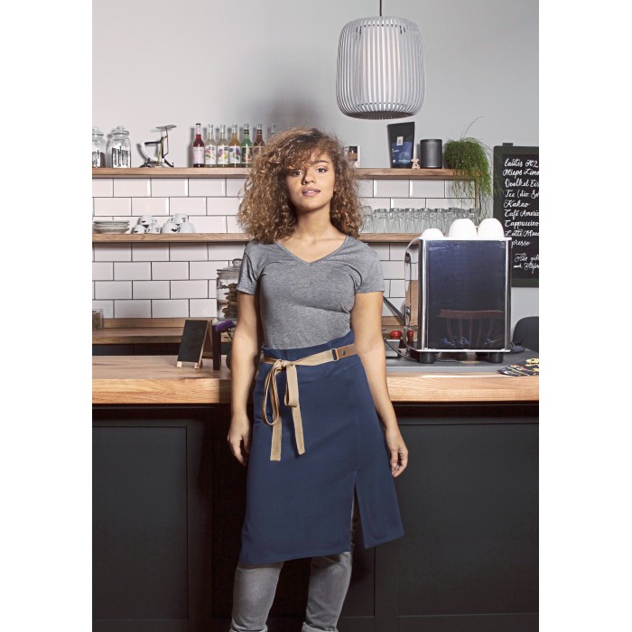 Twillowy materiał, 215 g/m² | Trwały kolor, łatwy w utrzymaniu, wyprodukowany w zrównoważony sposób | Nowoczesny, wygodny i stylowy krótki fartuch, wyprodukowany w zrównoważony sposób | Poliester pochodzący z recyklingu plastiku | Wykonane ze skóry naturalnej paski w miejskim stylu oraz paski w kontrastowym kolorze | Kontrastujące paski w naturalnym stylu | Wszystkie pasy można łatwo zdjąć lub zamocować za pomocą zatrzasków | Dwie kieszenie (18 x 20 cm) po bokach | Rozcięcie zwiększające zakres ruchu
