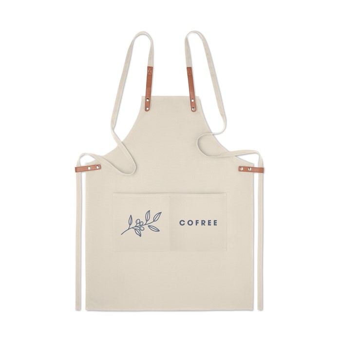 Regulowany fartuch kuchenny z 2 kieszeniami z przodu, z bawełny organicznej o gramaturze 340 gr/m².