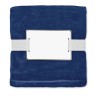 Koc z flaneli RPET 280 gr/m² ze wstążką i etykietą do nadruku.