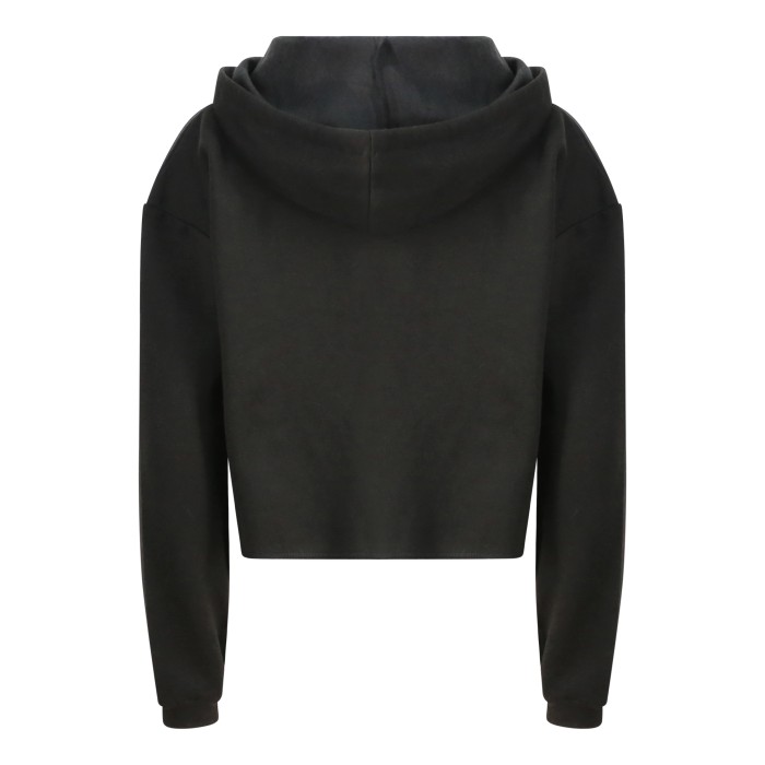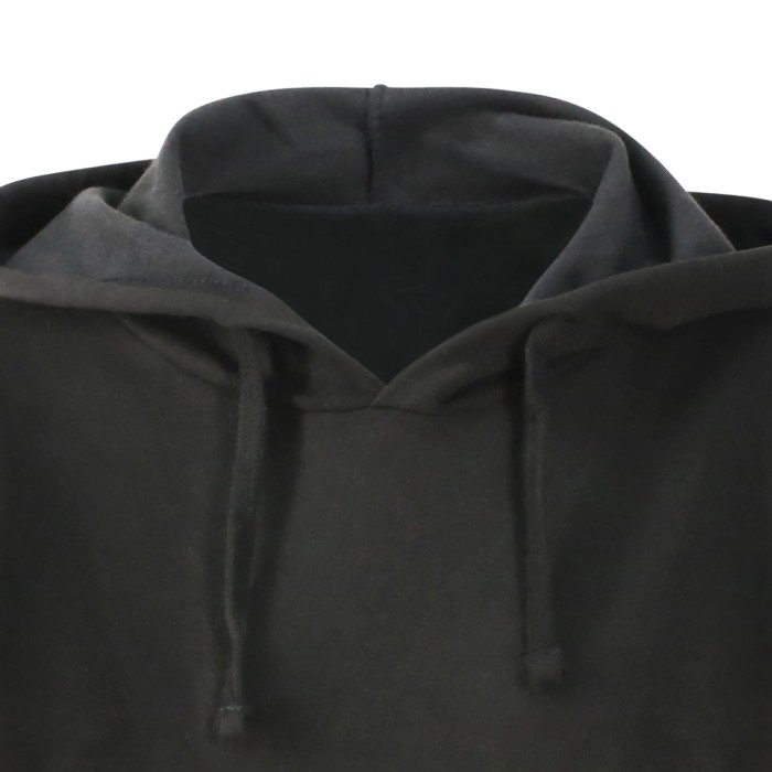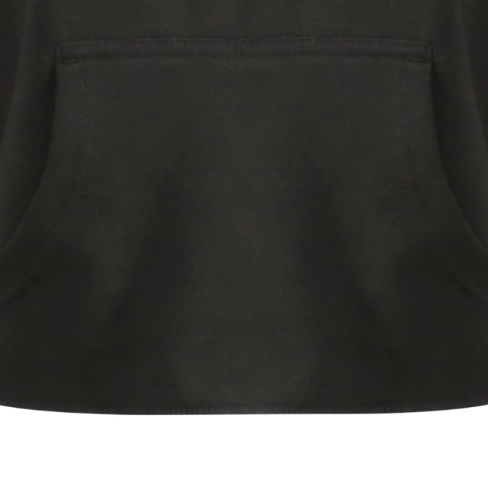 Bawełna ring spun | Wygodny fason | Krótki fason z obniżonym wszyciem rękawa | Kieszeń kangurka | Surowe wykończenie dołu koszulki z szwem krytym | Czesany polar od wewnątrz | Dwuwarstwowy kaptur | Płaskie troczki | Podwójne szwy | 100% tkanina bawełniana | Odrywana metka