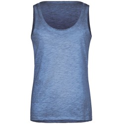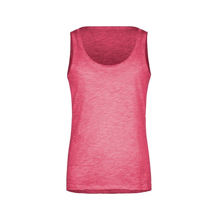 Koszulka damska tank top w stylu vintage | Single jersey wykonany z przędzy z efektem slub i czesanej bawełny organicznej ring-spun | Technika nadruku naniesionego sprayem | Dwuwarstwowe wykończenie dekoltu | Dekolt i pachy z wąskimi mankietami | Lekko dopasowana