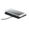 Stojak na telefon 300D melanż, RPET i 15W z funkcją bezprzewodowego ładowania. Wyjście: 9V/1.6A (15W) do szybkiego ładowania. Kompatybilny z najnowszymi modelami Android, iPhone ® 8 i nowsze.