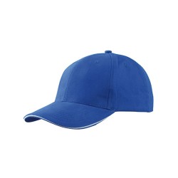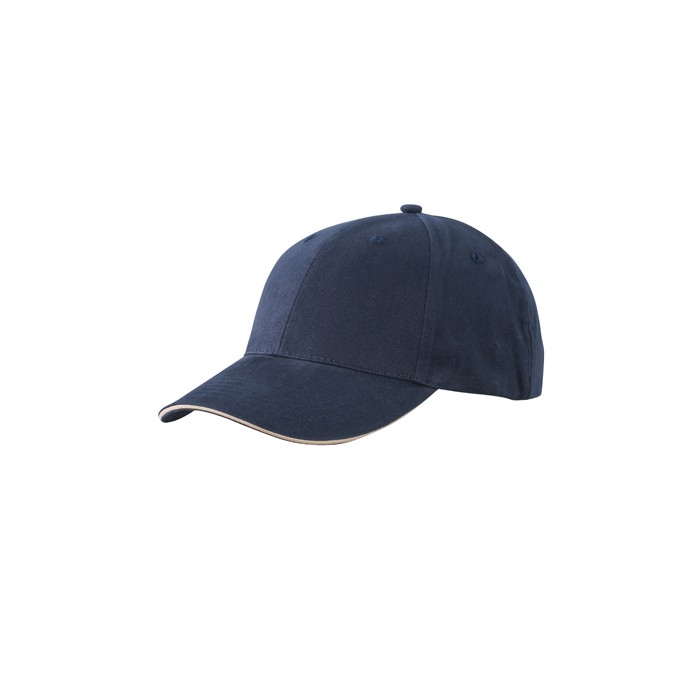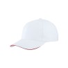 6-panelowa czapka z daszkiem typu sandwich | Bawełna czesana | Zapięcie na pasek z metalową klamerką | Sześć przeszywanych oczek | 6 ozdobnych szwów na daszku | Przednie panele laminowane | Satynowa taśma pochłaniająca pot
