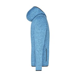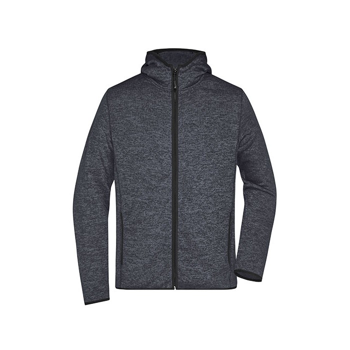 Melanżowa dzianina polarowa | Miękki i ciepły materiał. Łatwy w utrzymaniu | Na zewnątrz wygląd dzianiny, wewnątrz chropowaty | Szwy pionowe | Dopinany kaptur | Ściągacze w kontrastowym kolorze | 2 kieszenie na przodzie