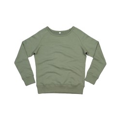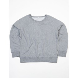Bawełna organiczna lub bawełna w konwersji na organiczną / poliester pochodzący z recyklingu (rPET) | Tkanina French Terry | Szeroki dekolt | Nowoczesny styl | Raglanowe rękawy | Głęboki, prążkowany dekolt
