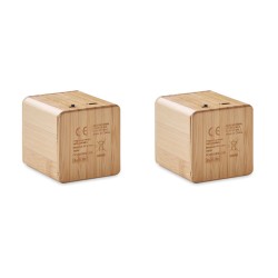 Zestaw 2 głośników bezprzewodowych 5.0 w bambusowej obudowie z sygnalizacją świetlną LED. 1 akumulator litowy 500 mAh w komplecie. Dane wyjściowe: 3W, 3 Ohm i 5V. Czas odtwarzania ok. 4h (70% głośności). Bambus jest produktem naturalnym, dlatego mogą wystąpić nieznaczne różnice w kolorze, wzorze i rozmiarze.